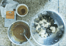 portion (mix well - make sure it does not get too liquidy). In the larger bowl - add broken up